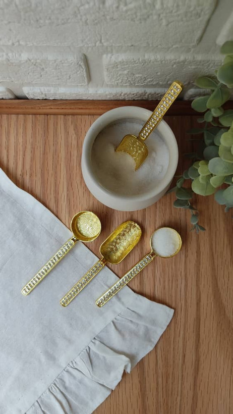 پیمانه طلایی رنگ ثابت دارای نگین کیفیت درجه ۱ مناسب ظرف شکر و فهوه و ادویه جات و..