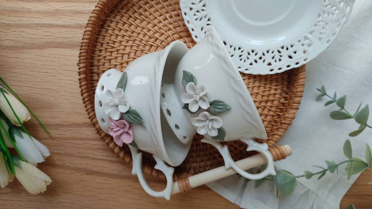 فنجان نعلبکی گل برجسته