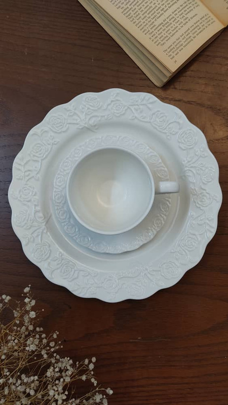 فنجان نعلبکی چای خوری رز بسیار زیبا و با کیفیت و ست غذاخوری با این کار در فروشگاه موجود است