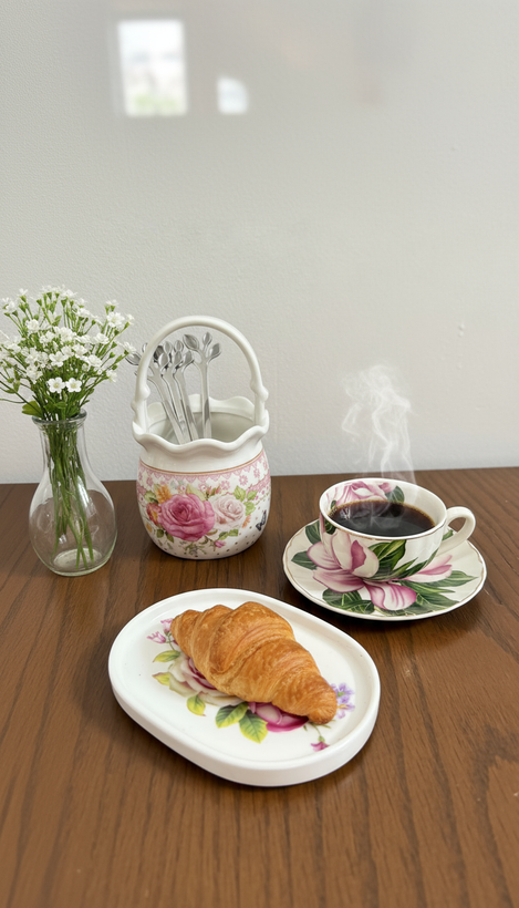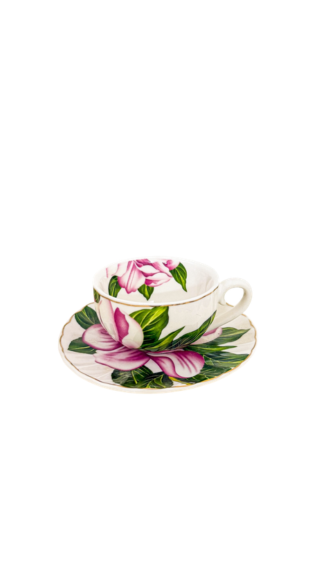 فنجان نعلبکی زیبای گل سرخ قهوه خوری