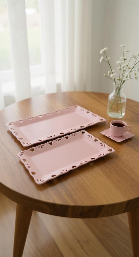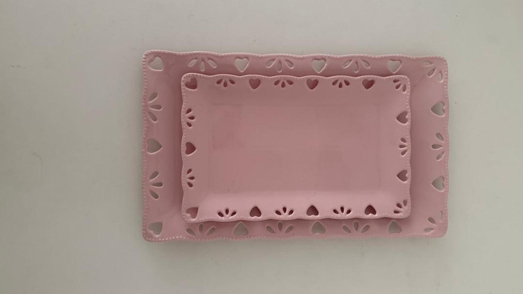دیس صورتی لبه قلبی برند لوکا ترک بسیار با کیفیت و سایز خیلی بزرگ با ابعاد ۲۵ در ۴۱