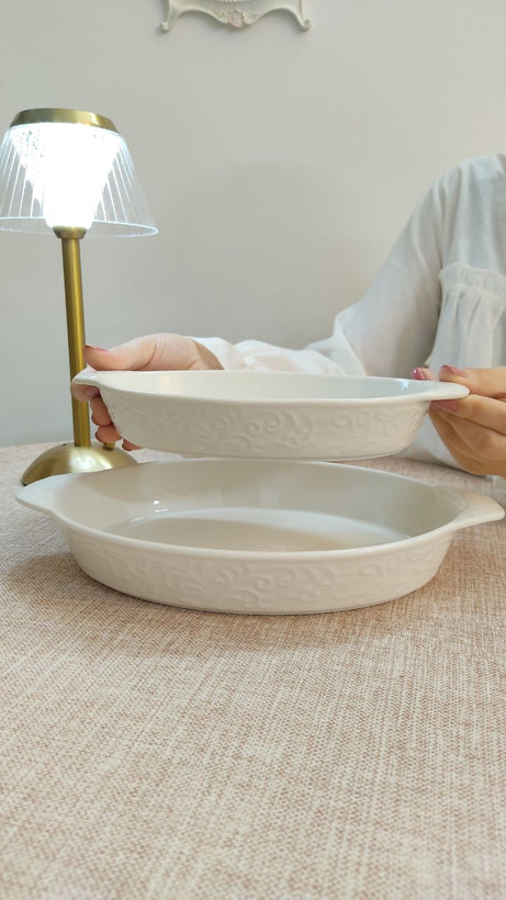 تابه های سرامیکی نقش برجسته با قابلیت گزاشتن داخل فرو مایکرو فر و ماشین ظرفشویی در دو مدل و هر مدل دو سایز دارد
