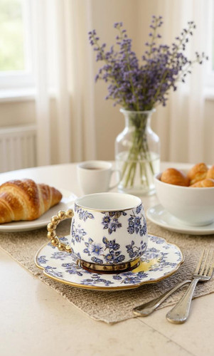 فنجان نعلبکی قهوه خوری قلم آبی